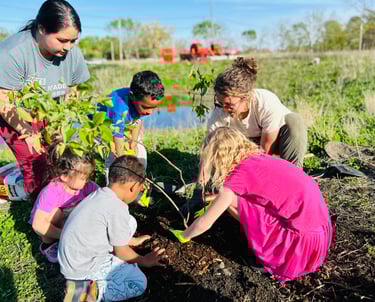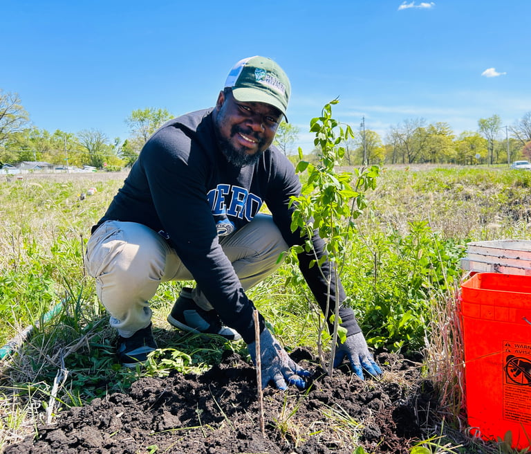 Ruthland Shilue, MOPGEL's environmental project leader, joined the Polk County conservation volunteer team in tree planting along the Four Mile Creek, Des Moines, Iowa